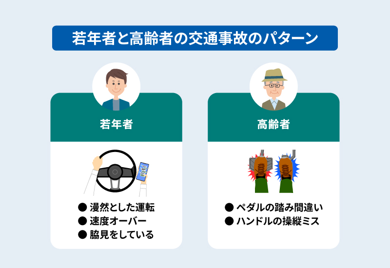 若年者と高齢者の交通事故のパターン